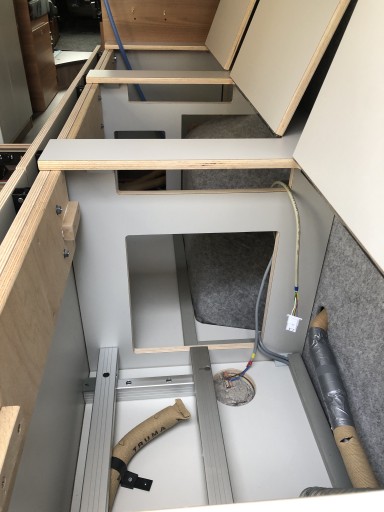 Der Frischwassertank auf der rechten Seite ist schon demontiert.