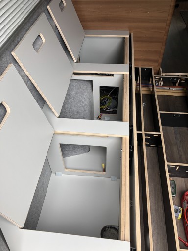 Das Holz stammt von "Der Plattenladen" und wurde hier zu Boxen verarbeitet. Diese wurden nur eingeschoben und fixiert.